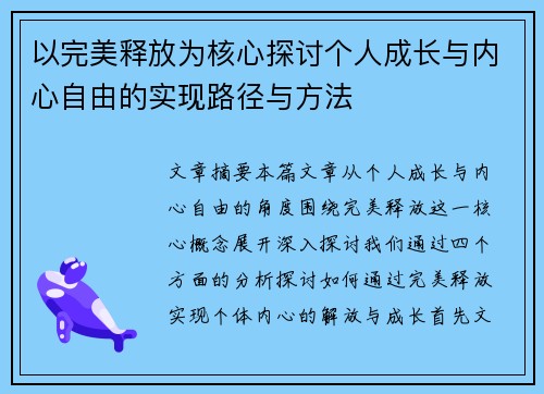 以完美释放为核心探讨个人成长与内心自由的实现路径与方法